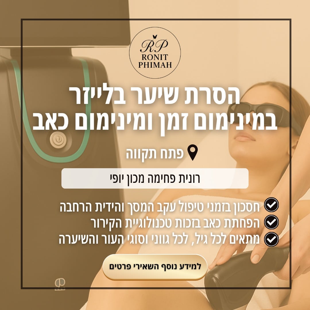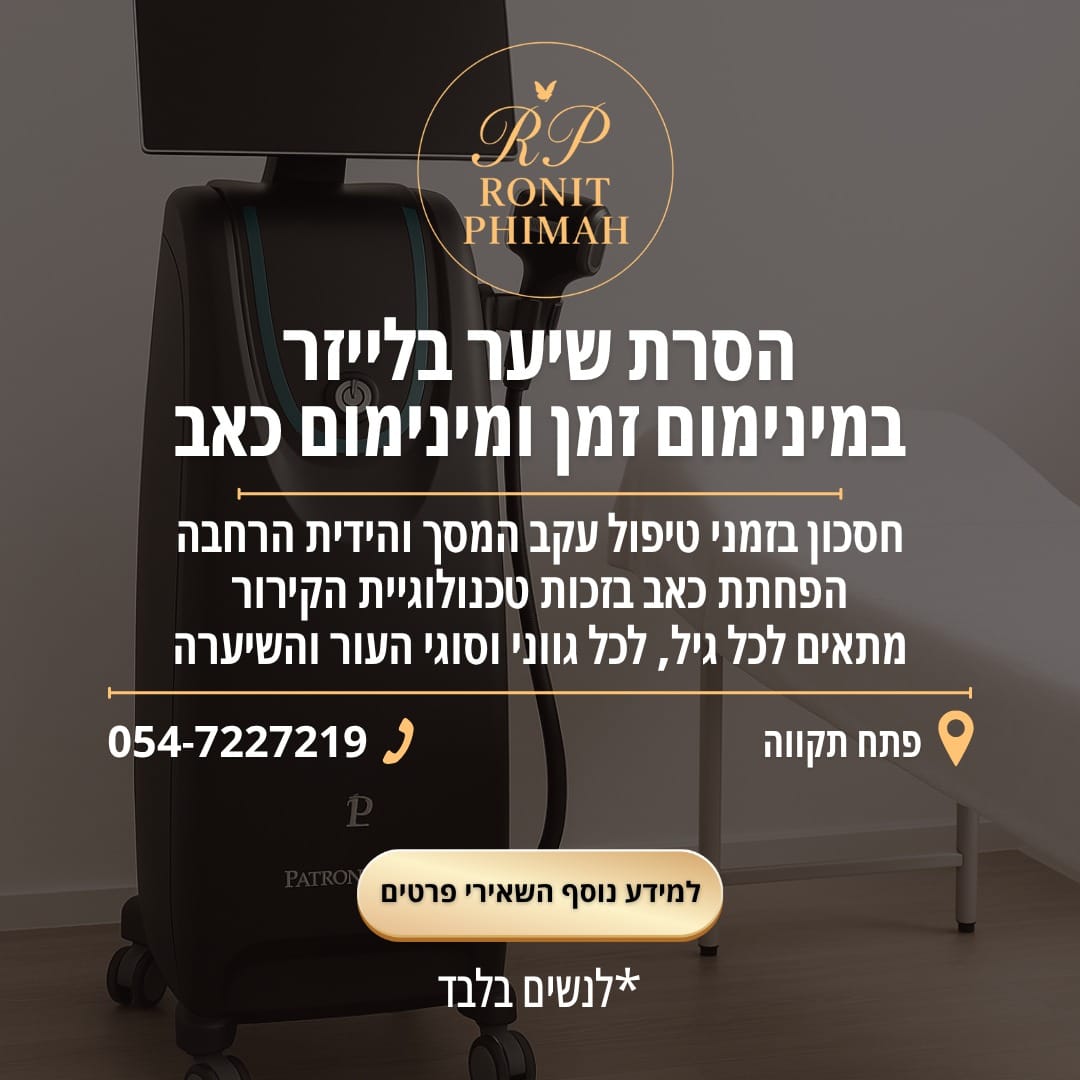 שמי רונית אני מטפלת בהסרת שיער בלייזר בשיטה הכי חדישה והמכשיר המתקדם ביותר .