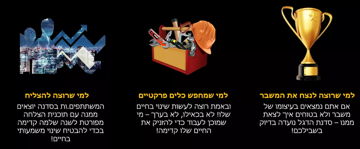 לא עוד משפטי מוטיבציה חסרי טעם, אלא כלים פרקטיים אמיתיים שיעזרו לכם לפרוץ קדימה בלי שום מחסומים!!!
